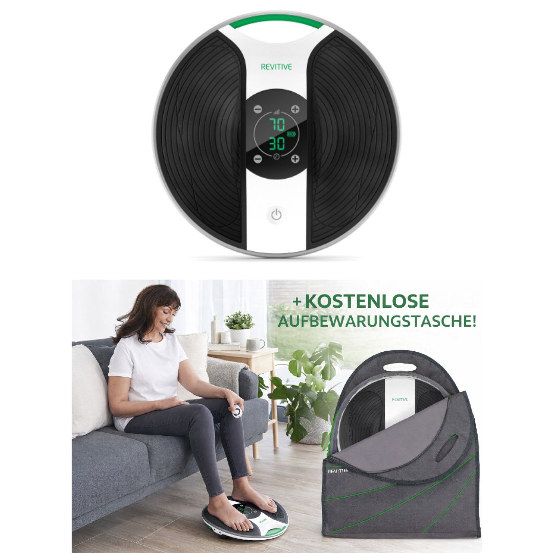 Der Revitive Medic Durchblutungs-Stimulator wurde entwickelt, um die Durchblutung zu verbessern, Schwellungen in Füßen und Knöcheln zu lindern und Erleichterung bei müden, schmerzenden und schweren Beinen zu verschaffen.