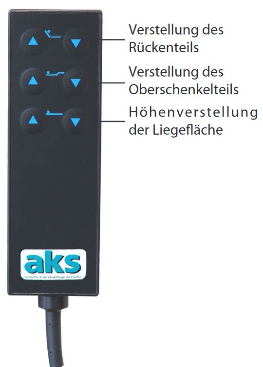 - vom Bett aus ohne pflegerische Hilfe per Handschalter elektrisch verstellbar