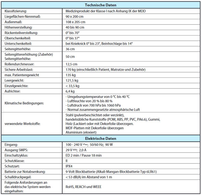 - Ausgestattet mit dem vergrößerten Scherenhub, der patentierten Verstellbarkeit des Fußteils mit Knieknick und dem Schaltnetzteil SMPS 29V werden die Erwartungen an Sicherheit, Umweltschutz und Wirtschaftlichkeit gem. dem Stand der Technik gerecht