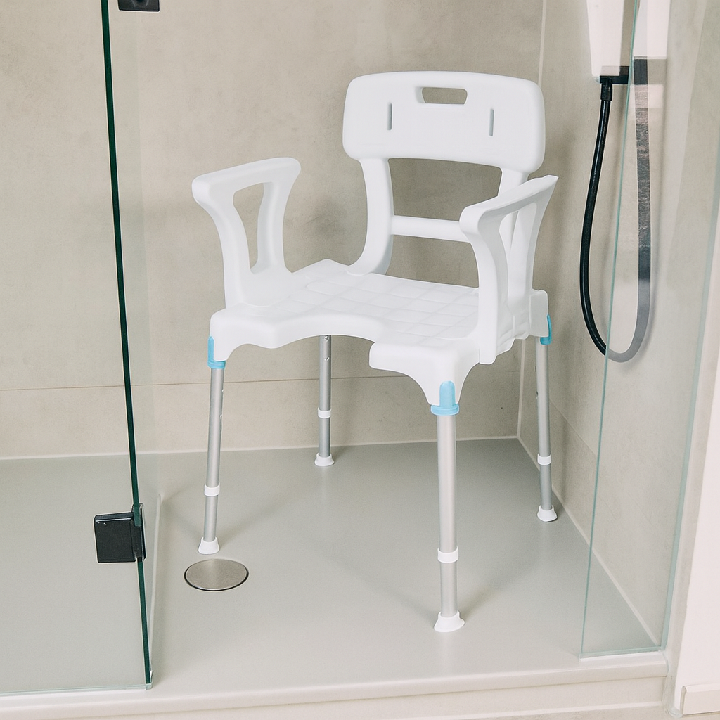 - Die Rückenlehne und Armlehnen sorgen für maximalen Komfort und noch mehr Sicherheit beim Duschen.