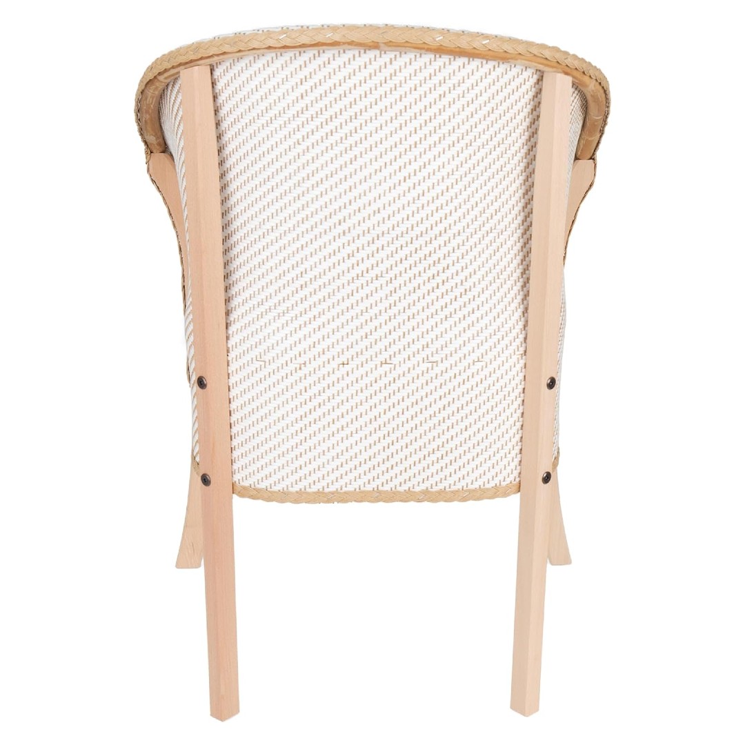 - Rahmen: Holz. Geflecht: Synthetikfaser. Sitzoberfläche: Vinyl.