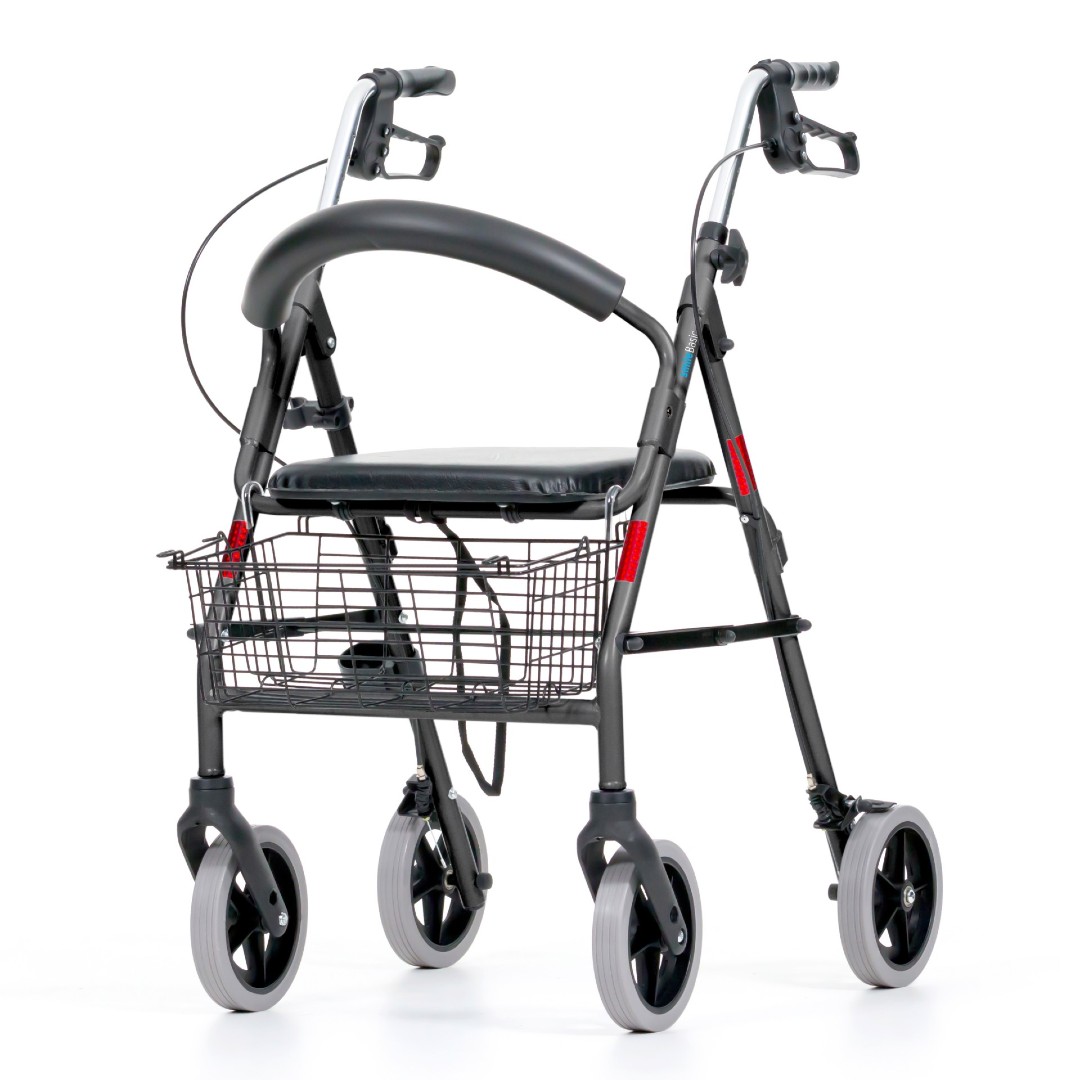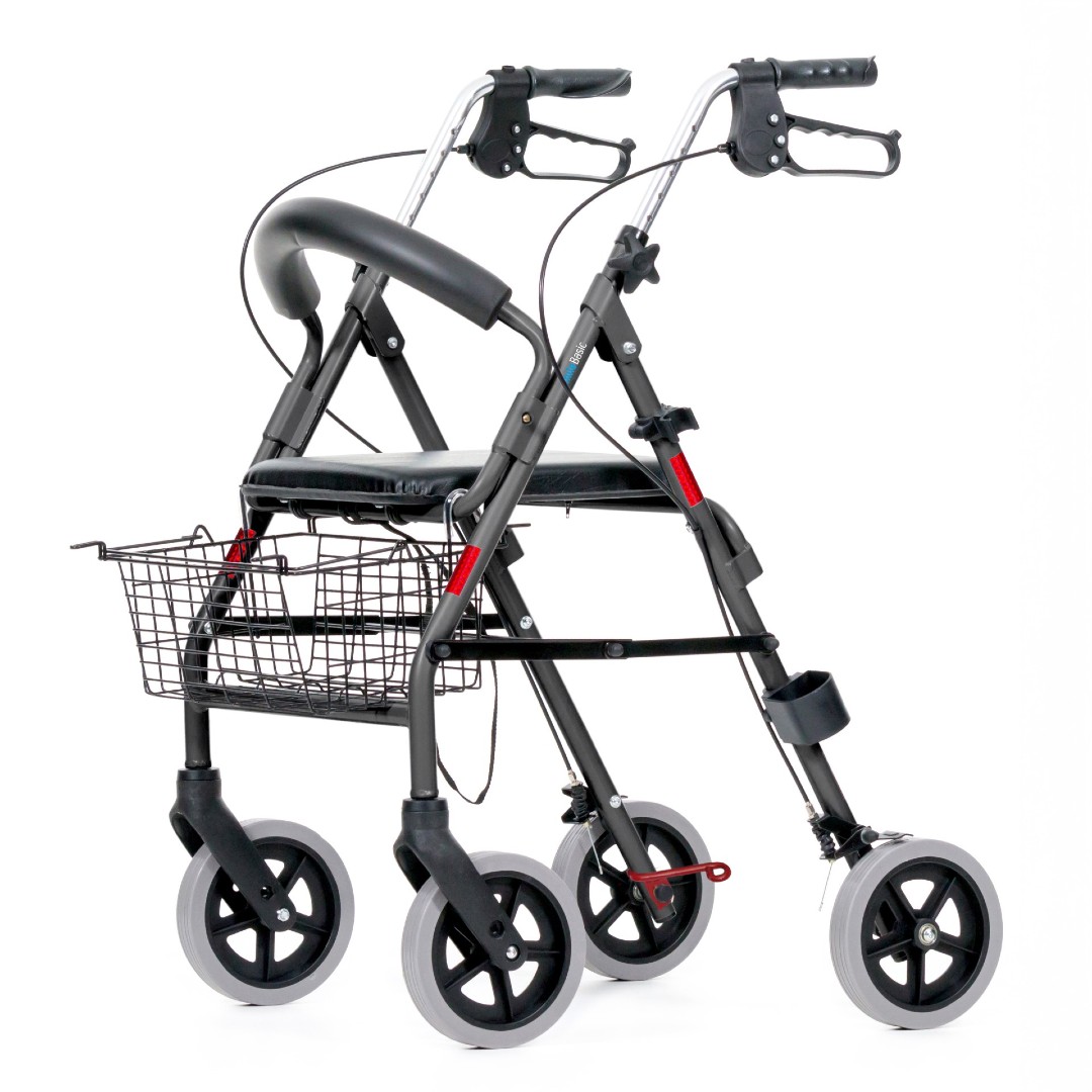 - Auch beim Komfort setzt der SmileBasic Pan klare Maßstäbe: Die gepolsterte Sitzfläche und die stabile Rückenlehne ermöglichen entspannte Pausen jederzeit. Die ergonomisch geformten, höhenverstellbaren Griffe lassen sich individuell auf Körpergrößen von 160 bis 195 cm anpassen und sorgen so für eine gesunde, aufrechte Haltung beim Gehen. Der integrierte Korb sowie der praktische Stockhalter machen den Rollator zu einem zuverlässigen Begleiter im Alltag, bei dem alles Wichtige stets griffbereit ist.