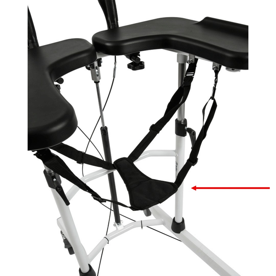 - Optional ist ein Gurtsystem zur Gehunterstützung und zusätzlichen Sicherheit erhältlich (Art.-Nr. 313380). Dieses wird einfach am Rahmen befestigt und ergänzt den Gehtrainer um eine weitere Stabilisierungsmöglichkeit (siehe Produktabbildung Bison inkl. Gurt).
