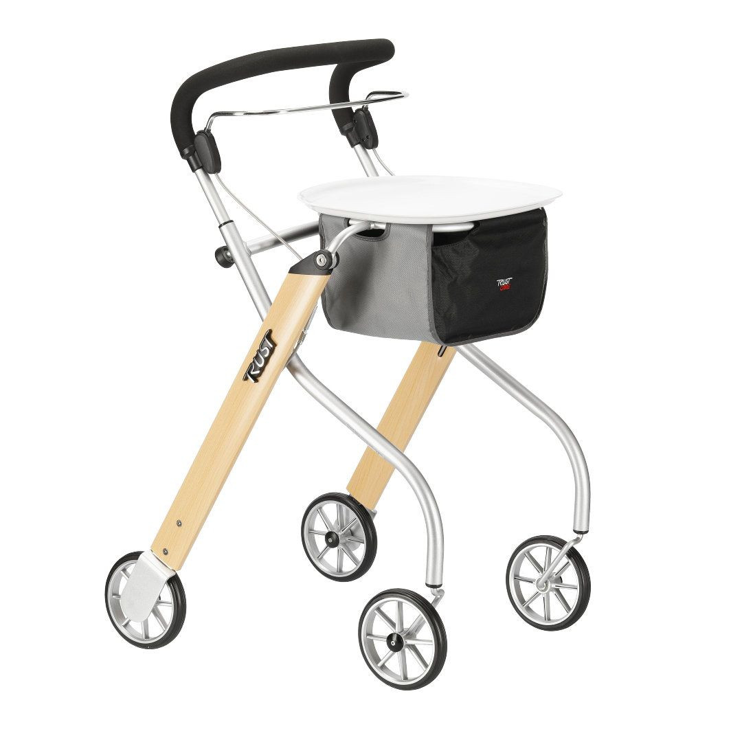 - Hochwertiger, edler Rollator in Buche/Aluminium-Optik für den Innenbereich