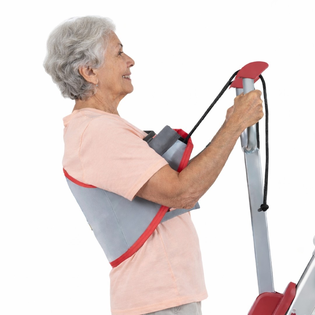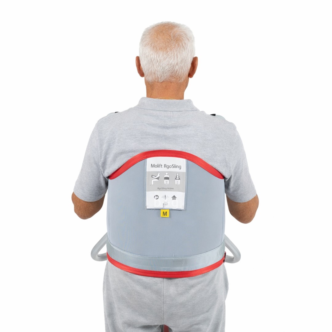 Dank seines durchdachten Designs lässt sich der RgoSling StandUp schnell und einfach um den Nutzer anlegen. Die ergonomische Formgebung und die integrierte Polsterung sorgen für hohen Tragekomfort und eine gleichmäßige Druckverteilung im Oberkörperbereich.