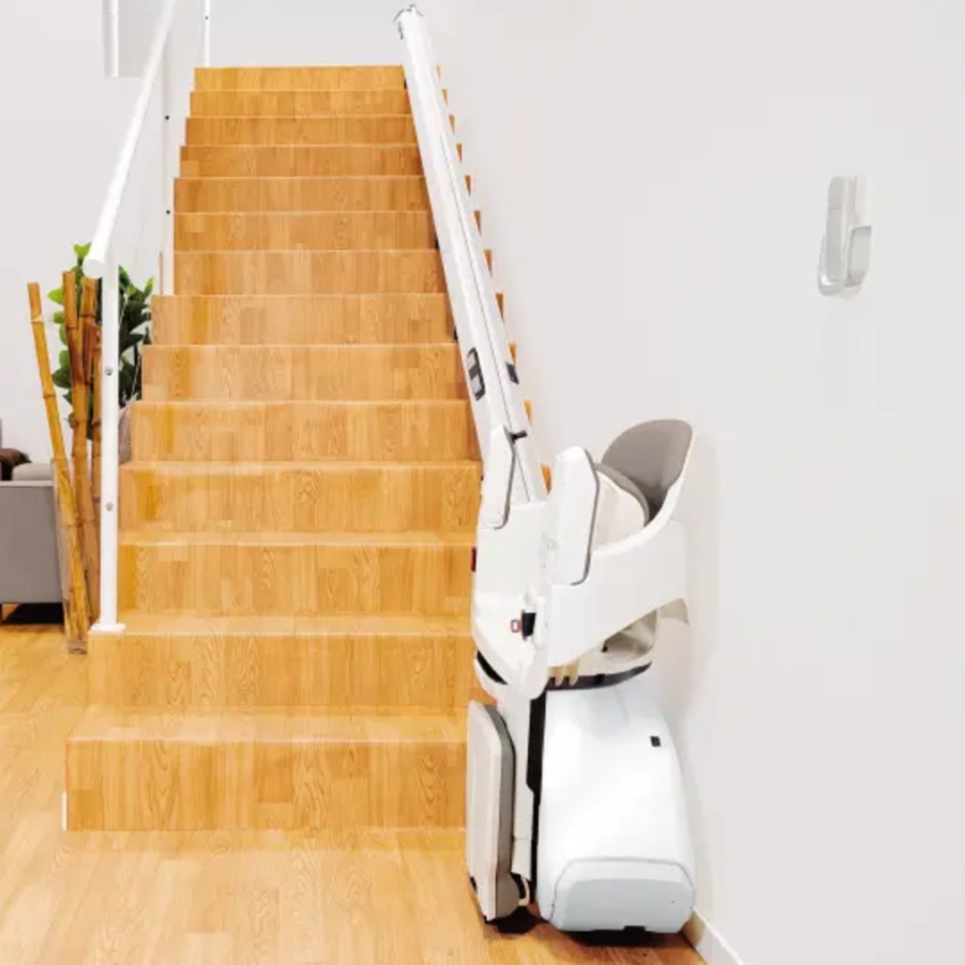 - Mit dem S100 Treppenlift von TK Home Solutions genießen Sie eine zuverlässige und komfortable Fahrt auf Ihrer geraden Treppe.