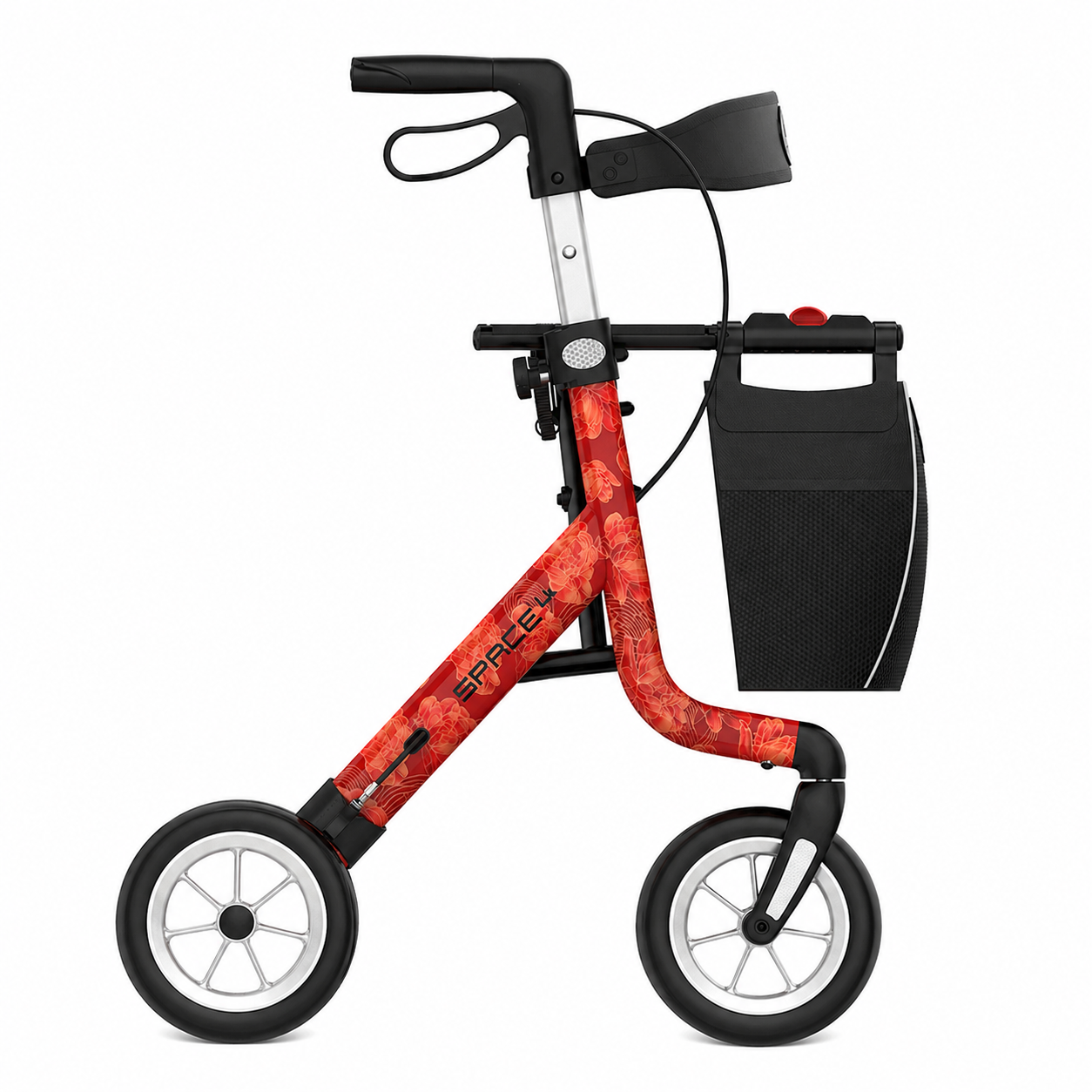 XEON Space LX Rollator Red Peony, der Leichtgewichtsrollator im eleganten Red Peony Design