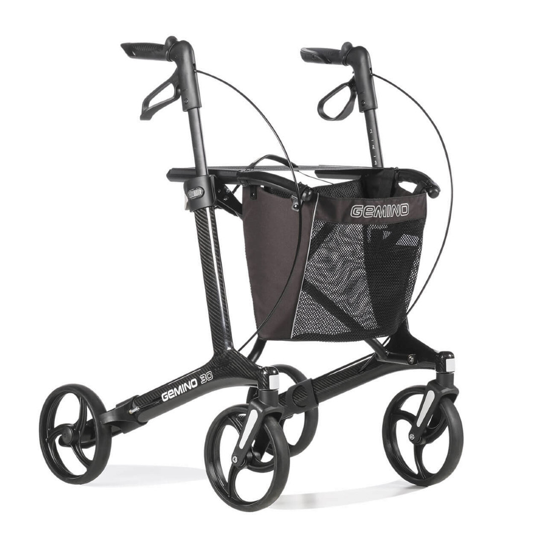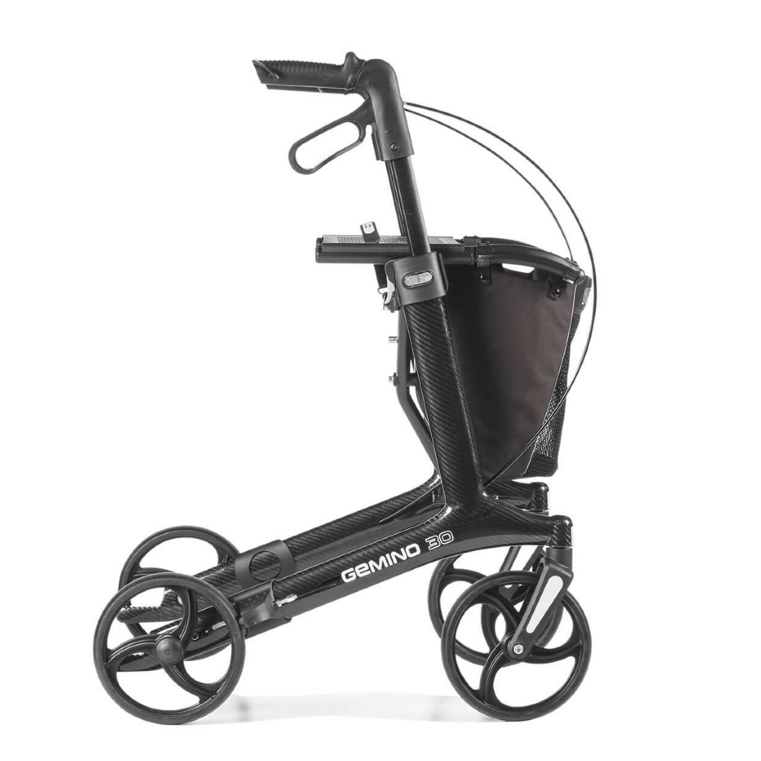 Der Gemino 30 Carbon Rollator ist federleicht und verfügt über ein patentiertes Falt-Klick-System und ein elegantes Design. Dank des geringen Gewichts lässt sich der Rollator für den Transport oder die Lagerung sehr leicht anheben und ist auch in engen Räumen sehr wendig. Das macht den Gemino 30 Carbon zu einem perfekten Begleiter für den Alltag und auch für Reisen.