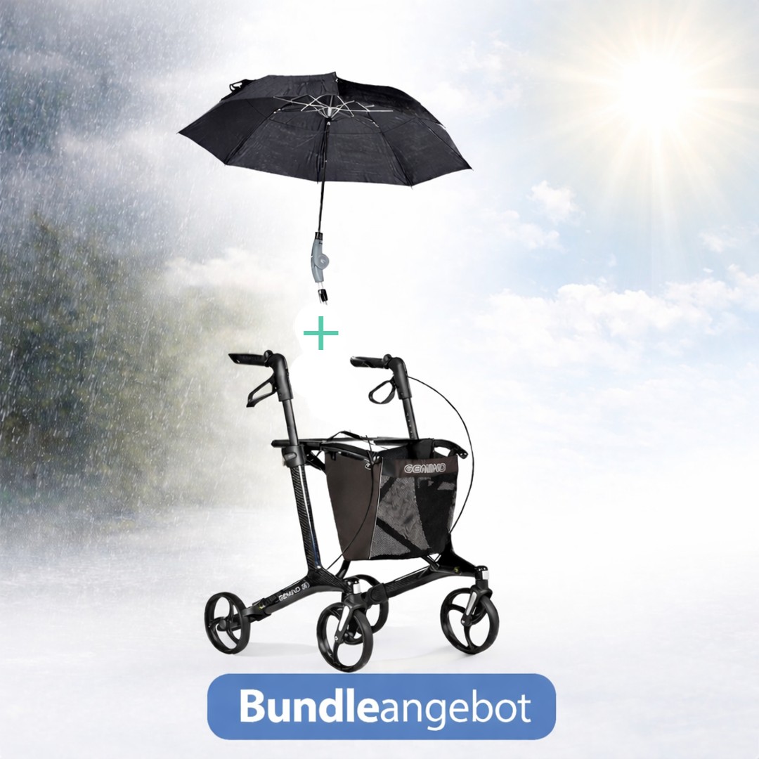 Gemino 30 Carbon Rollator Bundle mit Rollatorschirm