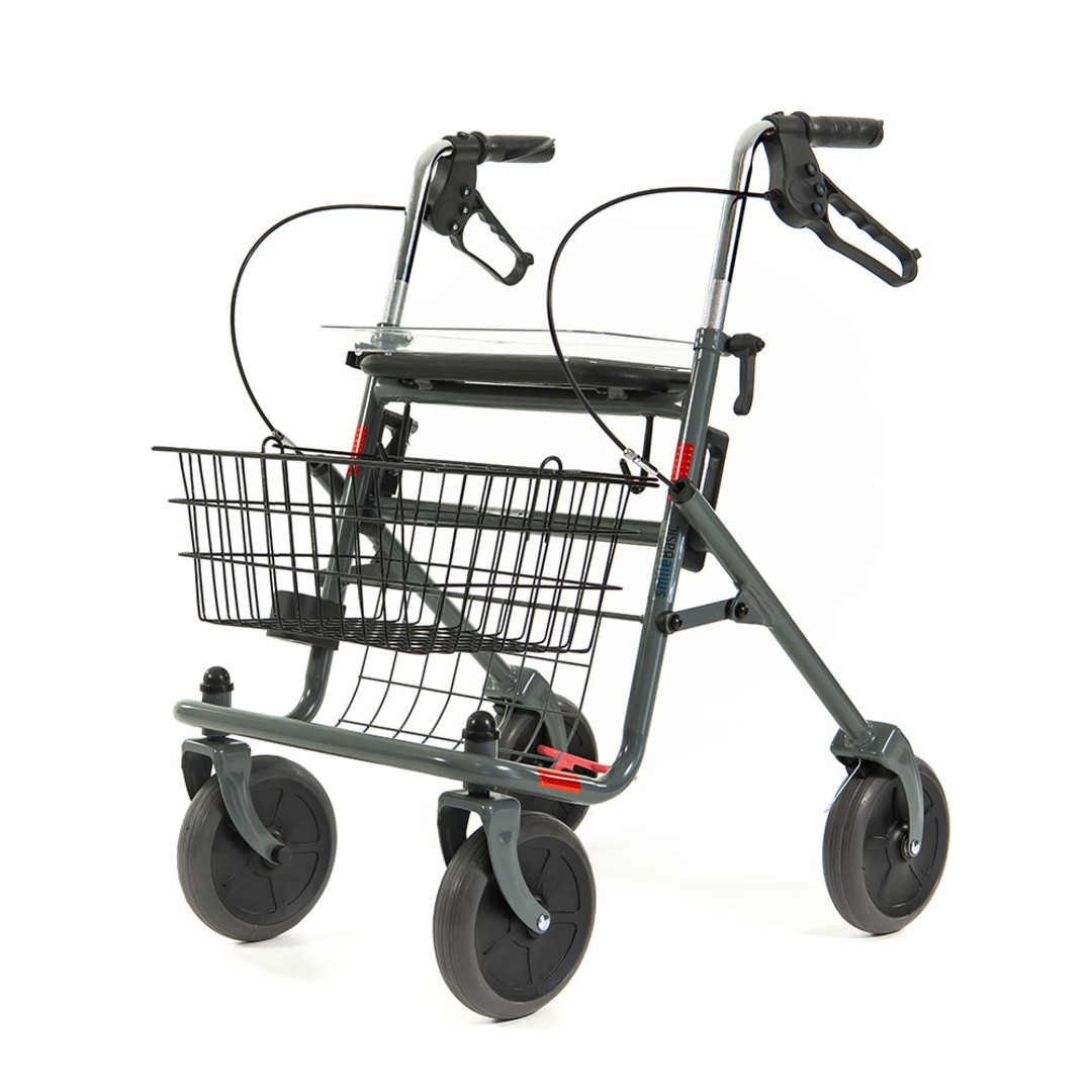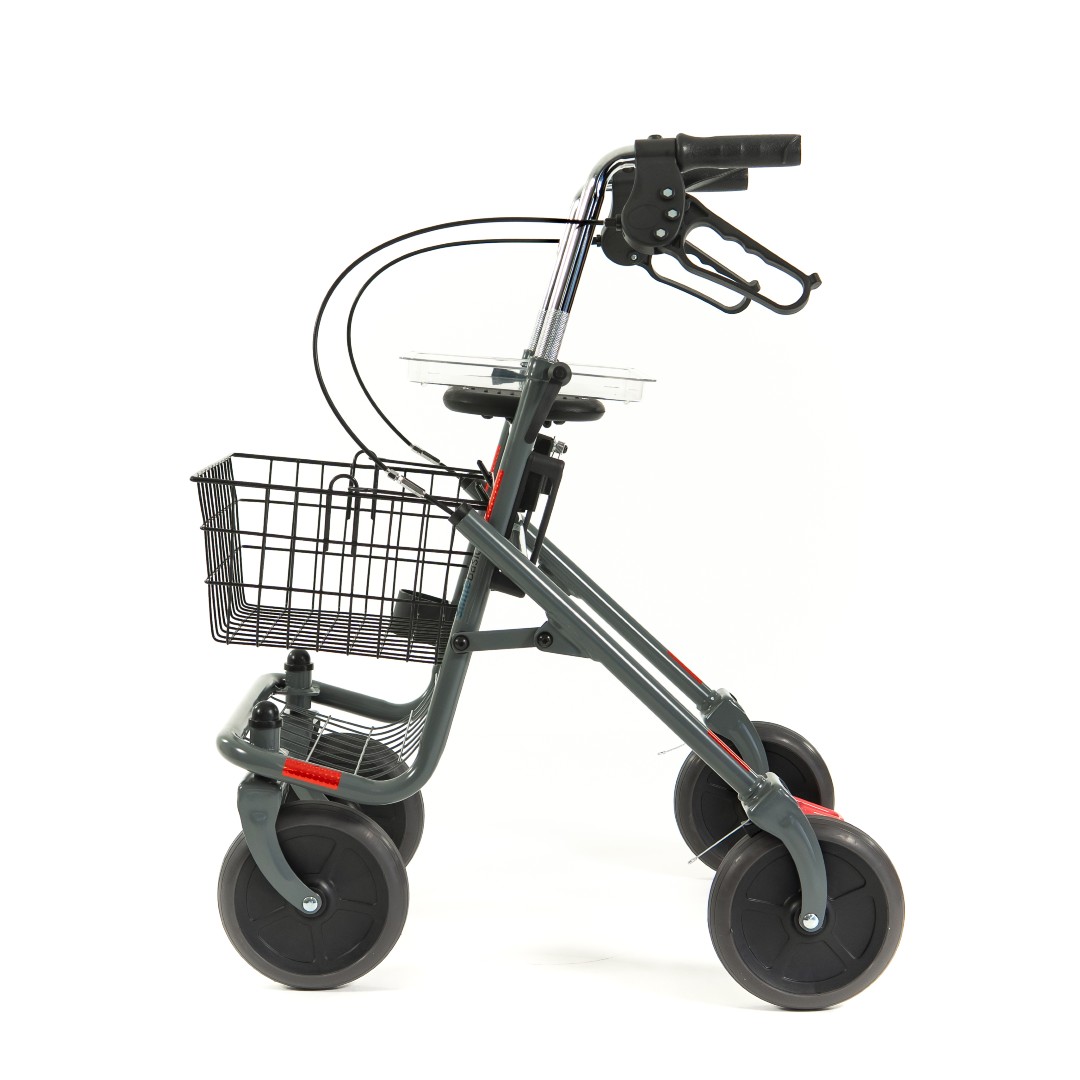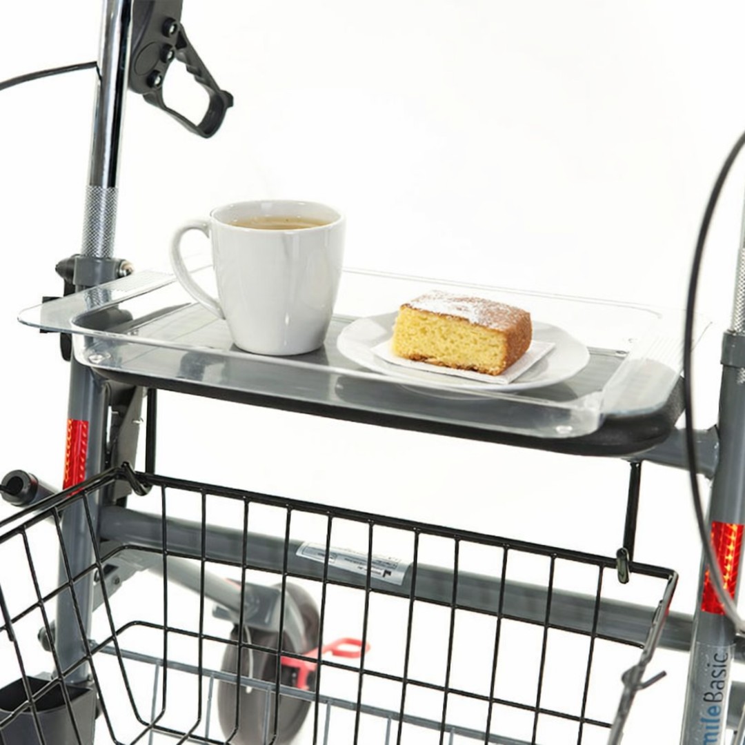 - Auch im Alltag zeigt sich der Hermes besonders praktisch: Der integrierte Sitz bietet jederzeit die Möglichkeit für eine kurze Pause. Mit dem aufsteckbaren Tablett lassen sich Speisen oder Getränke sicher transportieren – ideal für den Einsatz zu Hause. Ein geräumiger Einkaufskorb sowie ein Stockhalter runden die Ausstattung ab und machen den Rollator zum zuverlässigen Begleiter bei Einkäufen und Besorgungen.
