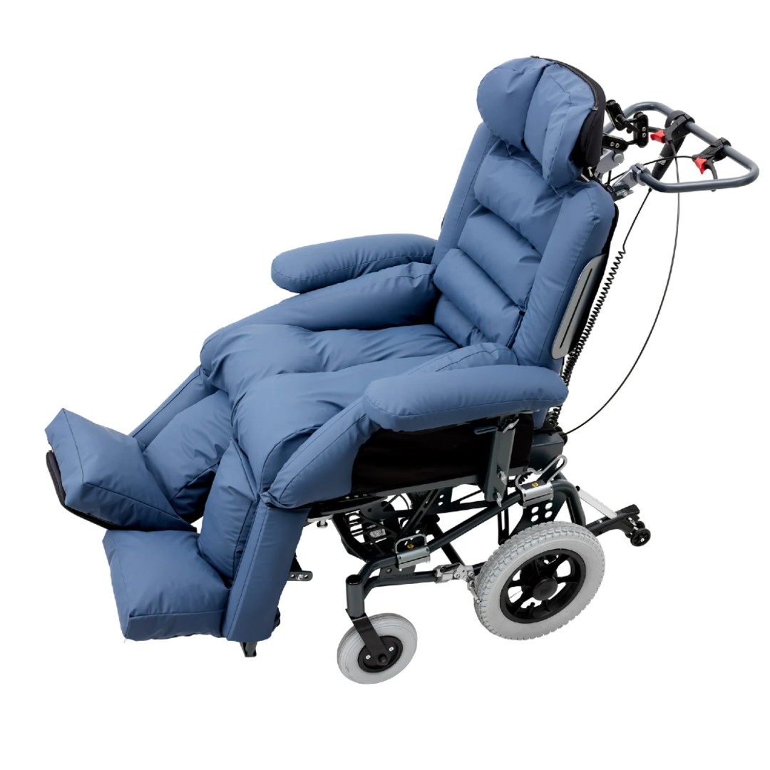 Elektrische Funktionen wie die Sitzkantelung und die Rückenverstellung gehören zur Serienausstattung und ermöglichen eine komfortable, sichere Positionierung im Alltag sowie eine spürbare Entlastung für Pflegepersonen.
