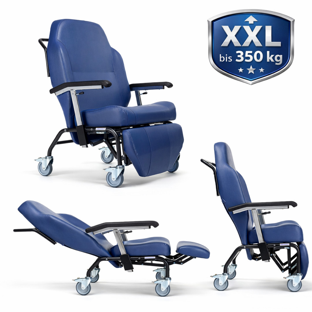 Der Vermeiren Normandie XXL ist die professionelle Lösung für die bariatrische Versorgung in Klinik, Reha und Homecare. Mit einer Belastbarkeit bis 350 kg, extra breiter Sitzfläche und synchroner Rücken- und Beinverstellung bietet dieser Schwerlast-Ruhesessel maximale Stabilität, Sicherheit und Komfort im Pflegealltag.