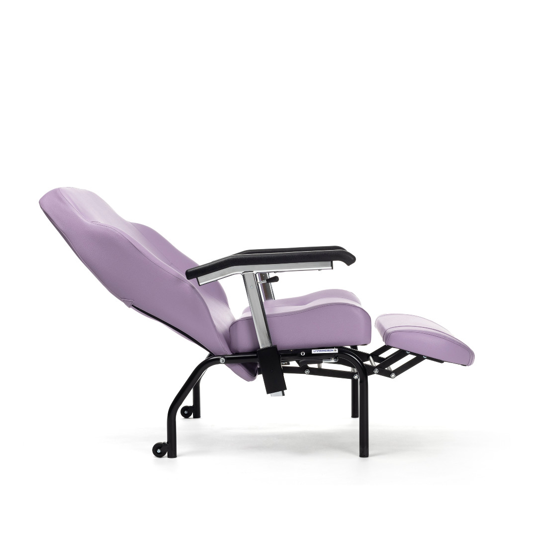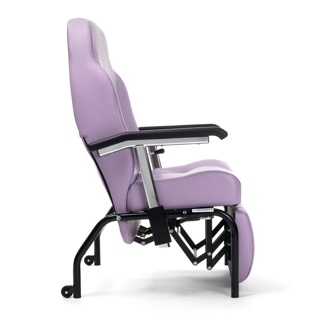 - Die komplett absenkbaren Armauflagen ermöglichen einen seitlichen Transfer vom Bett oder Rollstuhl direkt auf den Stuhl. Das reduziert Hebebewegungen und erhöht die Sicherheit für Patient und Pflegepersonal.