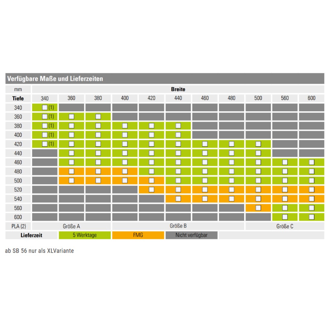 Kissenmaße (Sitzbreite) 34 bis 50 cm