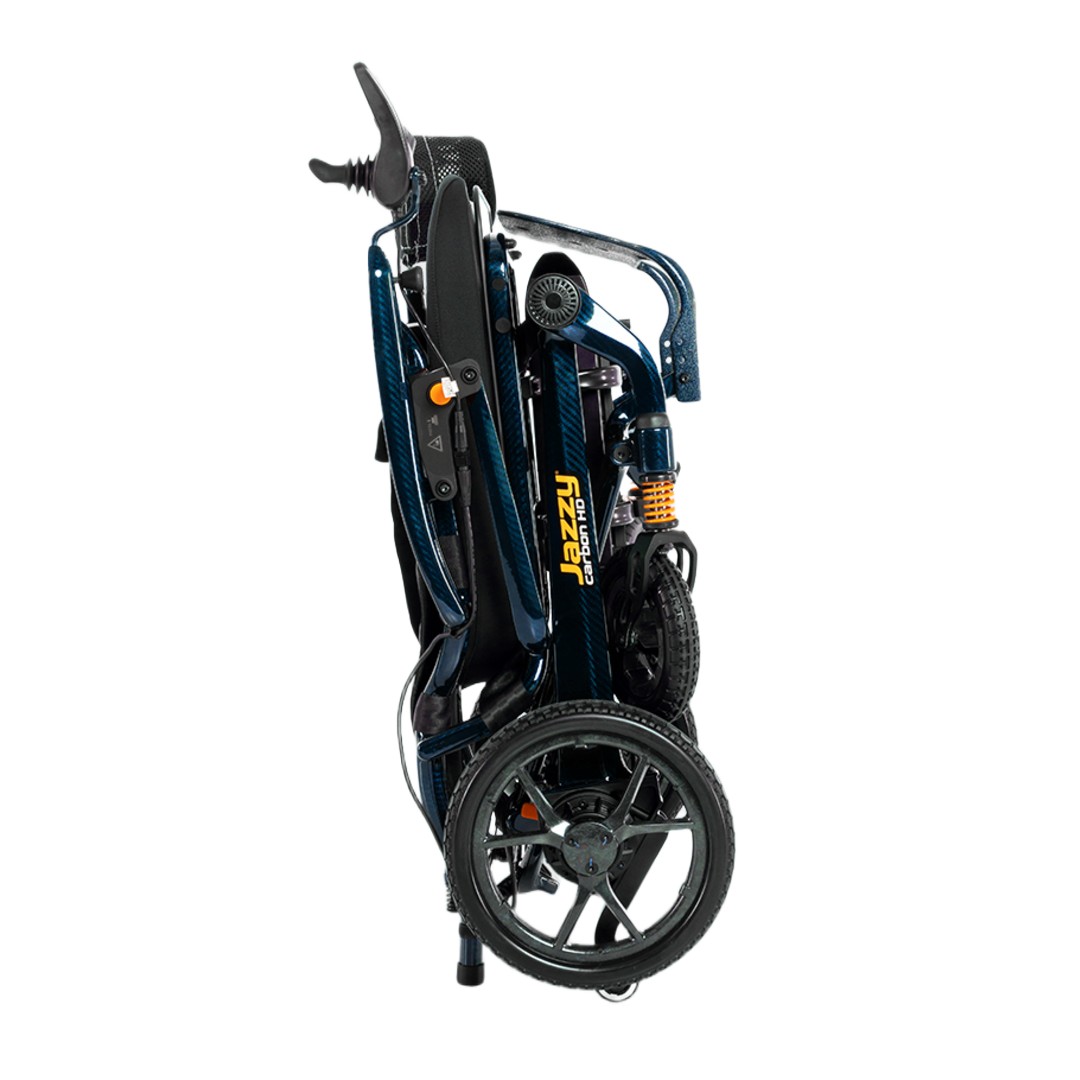 - Der Jazzy Carbon HD lässt sich in wenigen Sekunden zusammenfalten und sicher in der Faltposition verriegeln.